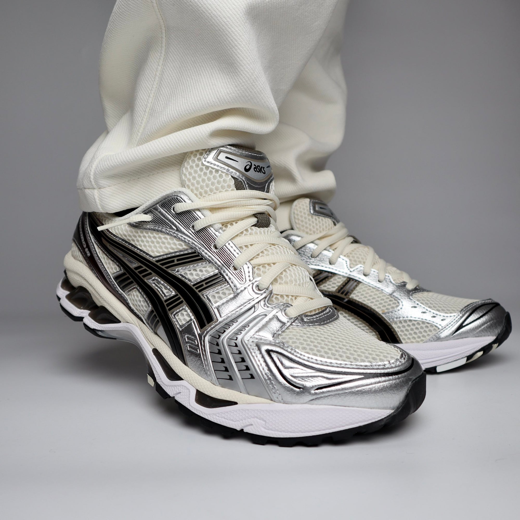 De GEL-Kayano 14 is surprisingly veelzijdig. Rock ‘m met een oversized Essentials hoodie en parachute pants voor die skater-meets-runner look. Of houd het clean met een zwarte tech-jas en joggers. Wil je extra opvallen? Ga dan voor een colorway met metallic silver of gold details. Trust us, je blik wordt sowieso gevangen.
