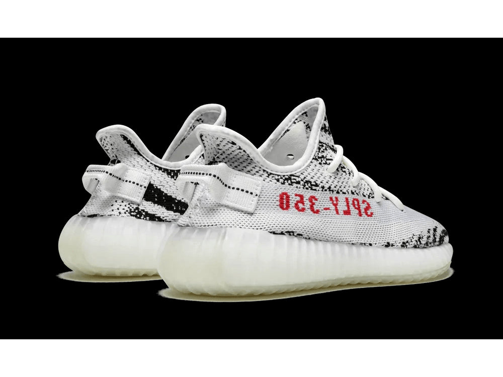 La adidas Yeezy Boost 350 v2 "Zebra" est la version réapprovisionnée de la populaire couleur "Zebra" qui a été initialement lancée un an plus tôt. Les Yeezys "Zebra" de 2018 présentent le même schéma de couleurs que la première version dans l'ensemble. Mais il y a quelques différences mineures, comme une teinte de blanc plus claire pour la semelle extérieure, un rouge plus vif pour le texte "350 - SPLY" sur la tige Primeknit, des dates de production différentes sur l'étiquette de taille intérieure, et un moule différent pour la semelle extérieure en mousse Boost.