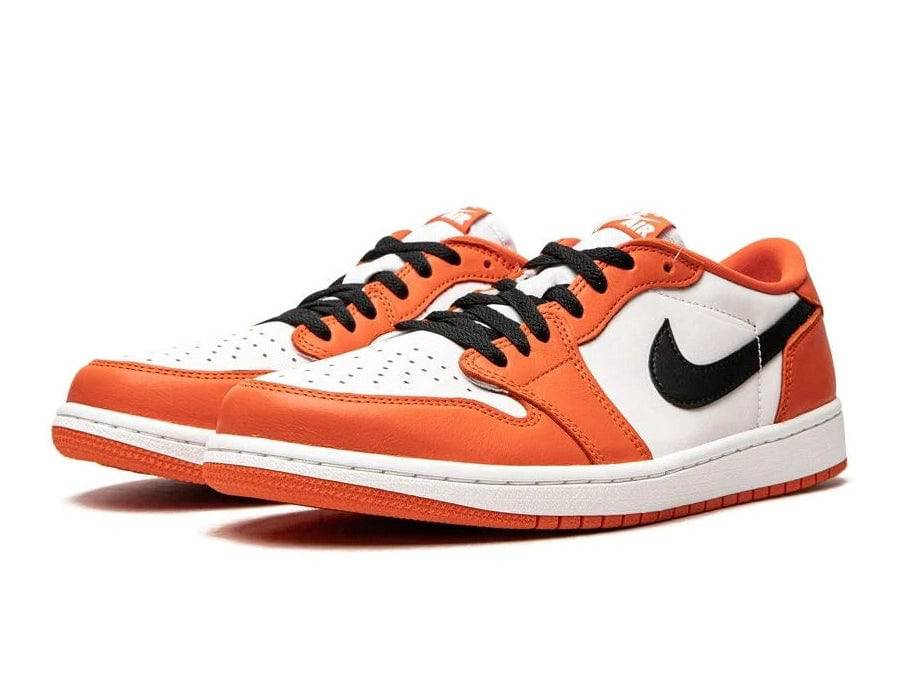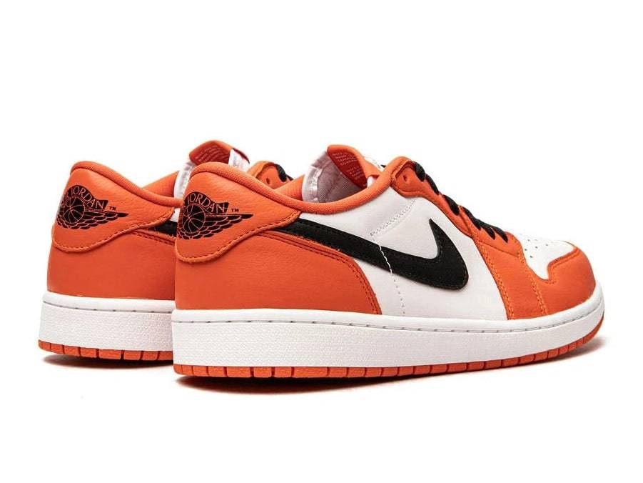 La Air Jordan 1 Low OG "Starfish" est une sortie d'août 2021 de la première chaussure signature de Michael Jordan en version basse qui rend hommage à une couleur désormais classique. La "Starfish", malgré son surnom, fait référence à la populaire "Shattered Backboard" de la Air Jordan 1, en particulier la "Reverse Shattered Backboard" de 2016, avec son schéma de couleurs noir, blanc et orange. De plus, la Air Jordan 1 Low OG est une reproduction presque identique de la version originale de la chaussure de basketball basse de 1985. En ce qui concerne la "Starfish", du cuir blanc apparaît sur l'orteil perforé et le panneau central. Du cuir de couleur Starfish contrastant se trouve sur les panneaux superposés. Un Swoosh en cuir noir apparaît de chaque côté. Le placement du logo "Wings" noir sur le talon est un élément de design fidèle à l'original de la Air Jordan 1 Low OG. Les lacets noirs contrastent avec la languette en nylon blanche et l'étiquette de languette Starfish avec le branding "Nike Air" en blanc.