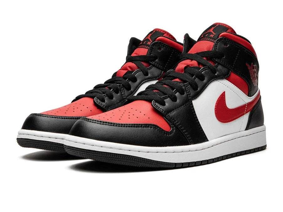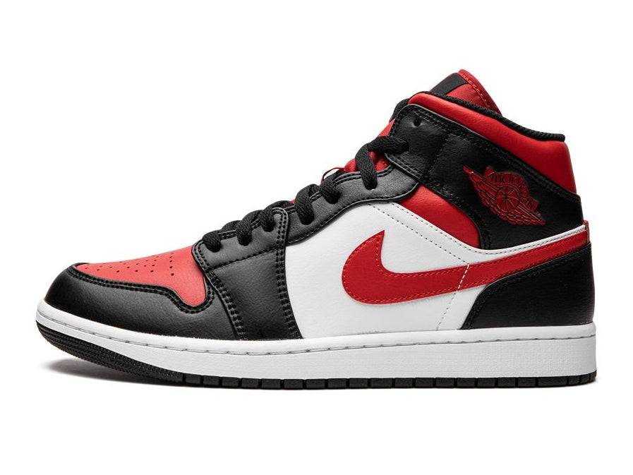 La Air Jordan 1 Mid “Bred Toe” est une couleur de la chaussure de style de vie qui présente les couleurs de l'uniforme de l'équipe blanche, noire et rouge des Chicago Bulls dans son design. Inspirée par la couleur originale Air Jordan 1 High “Black Toe” que Michael Jordan portait avec les Bulls en 1985, la version moderne “Bred Toe” de la Jordan 1 Mid met à jour le style classique, et ce, avec aisance. Du cuir rouge apparaît sur le bout perforé tandis que du cuir noir contrastant se trouve sur le capuchon, l'avant-pied, les œillets, le col et le talon. Le panneau central est conçu en cuir blanc. Un Swoosh en cuir rouge flamboyant apparaît de chaque côté de la chaussure, et un logo “Wings” rouge orne le col. Une semelle intermédiaire blanche et une semelle extérieure en caoutchouc noir complètent le look.