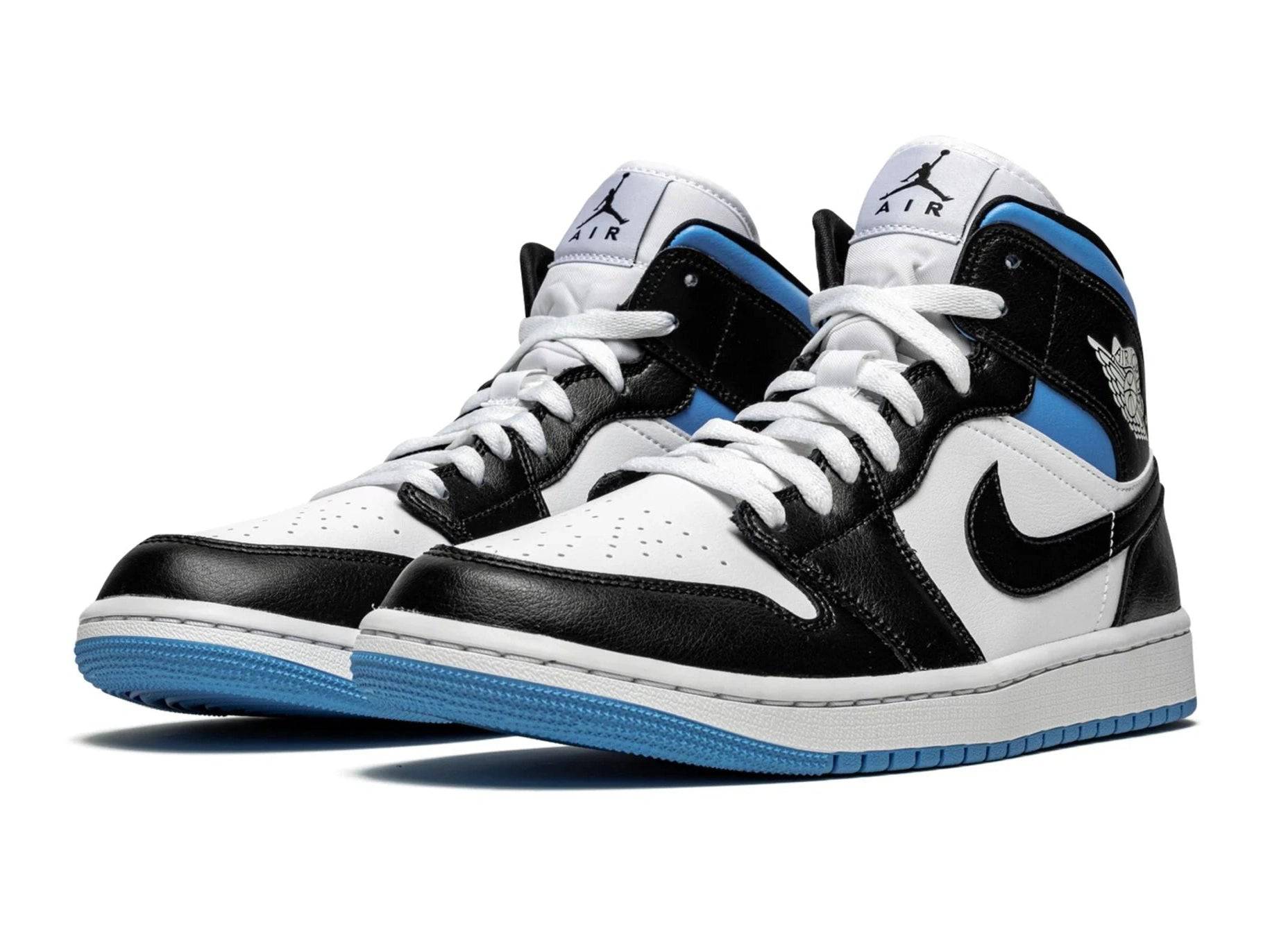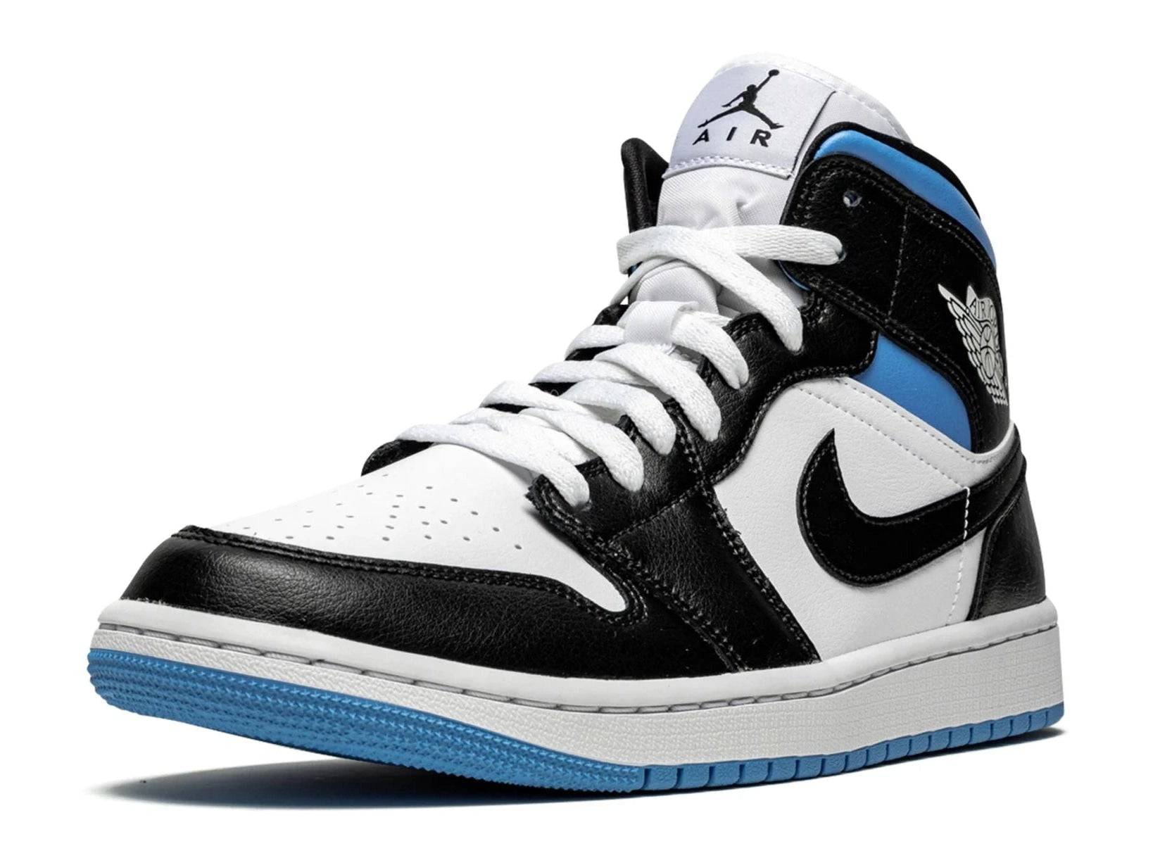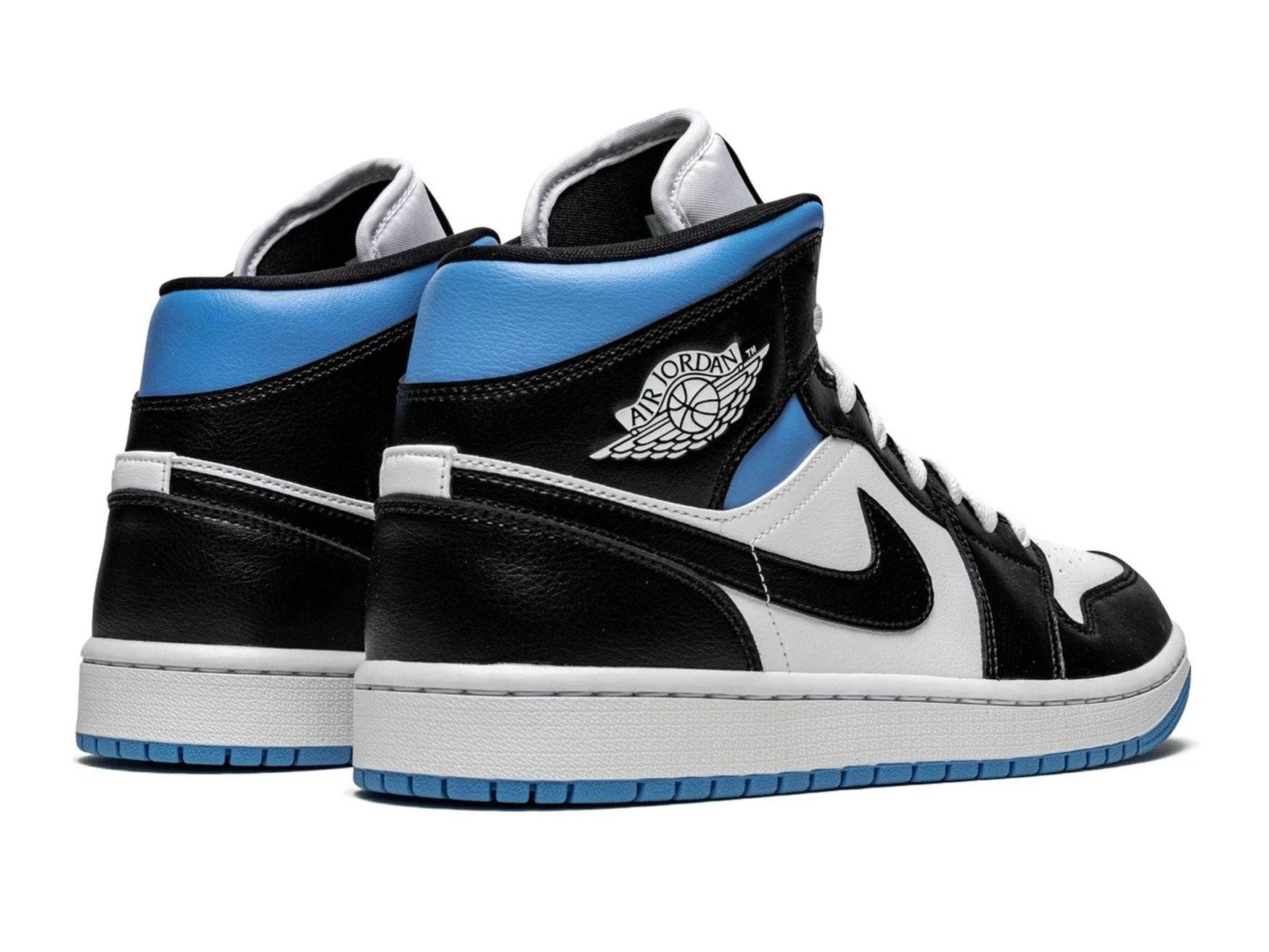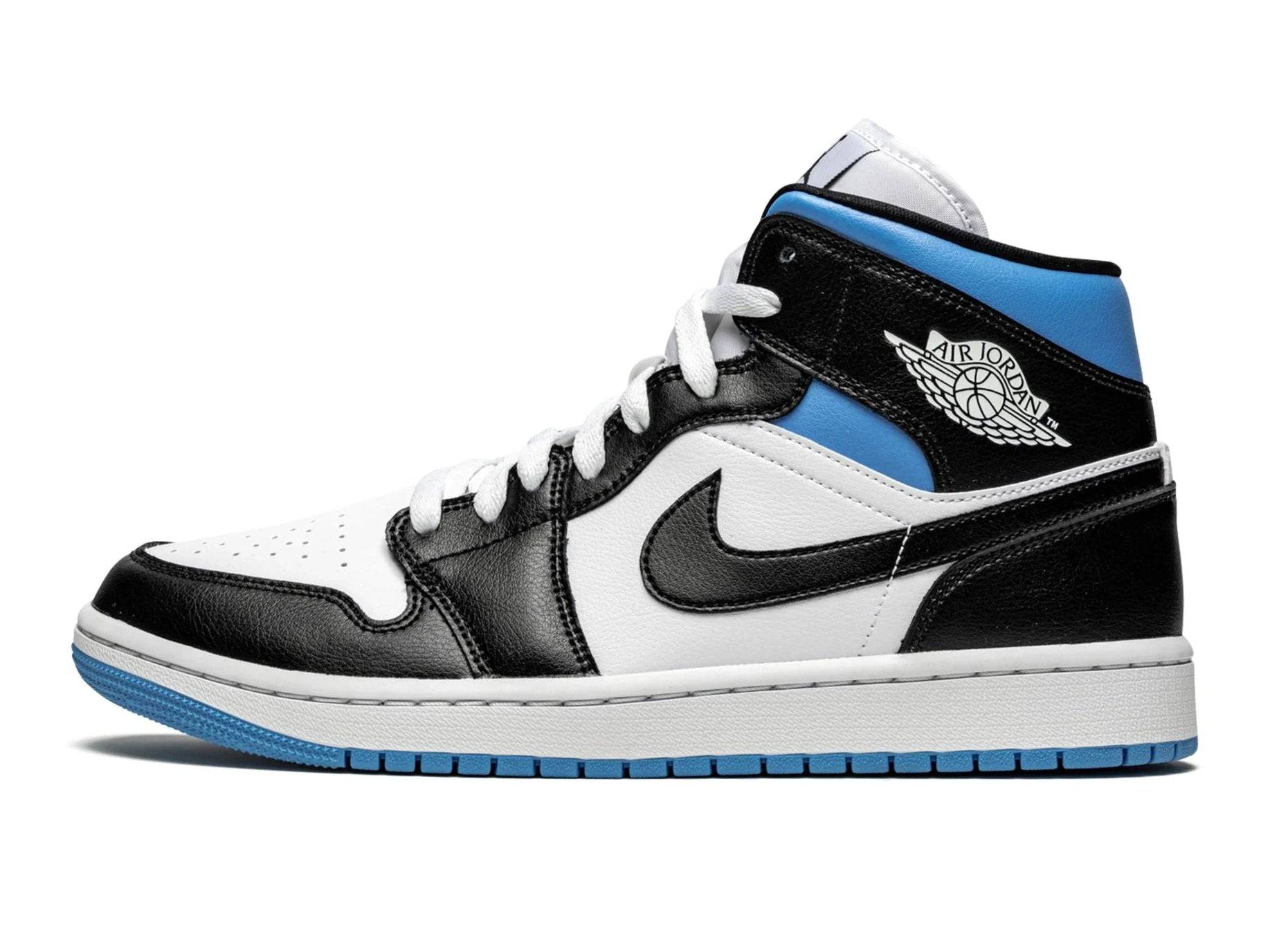 La Women’s Air Jordan 1 Mid "Black/White/University Blue" est une version exclusive pour femmes de la première chaussure signature de Michael Jordan dans une palette de couleurs polyvalente. En forme mi-haute, le "Black/White/University Blue" présente un cuir blanc sur l'orteil perforé et le panneau central. L'avant-pied, les œillets, le col, le talon et le Swoosh sont habillés de cuir noir. Un graphique "Wings" blanc apparaît sur le revêtement en cuir noir au-dessus du col University Blue et un logo Jumpman noir et "Air" se trouve sur l'étiquette de la languette en nylon blanche. En dessous, une semelle intermédiaire en caoutchouc blanc et une semelle extérieure University Blue contrastante complètent le look.
