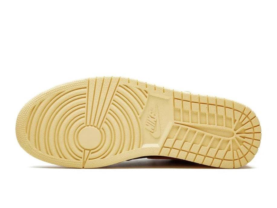 La Air Jordan 1 OG “Shattered Backboard 3.0” est la troisième version de la très convoitée couleur “Shattered Backboard” de la Air Jordan 1. Le thème “Shattered Backboard” s'inspire d'un match d'exhibition en Italie auquel Michael Jordan a participé durant sa saison de rookie. Lors de ce match, Jordan a célèbrement brisé le verre du panneau arrière après un dunk monstrueux. Les deux premières itérations de la “Shattered Backboard” ont rencontré un succès grâce à l'utilisation de matériaux de qualité et à leurs coloris orange et noir accrocheurs. La “Shattered Backboard 3.0” s'inscrit dans la lignée des versions précédentes de la sneaker et ajoute de nouvelles caractéristiques de design pour se démarquer. Une différence notable est qu'un cuir verni froissé remplace le cuir trouvé sur les deux premiers modèles “Shattered Backboard”. Le cuir verni froissé noir est présent sur le panneau central, l'orteil et le col de la cheville. Le cuir verni froissé Pale Vanilla Starfish ajoute des éclats de couleur autour de l'orteil, du panneau latéral, du Swoosh et du talon latéral. Un logo Wings en cuir noir se trouve près du col. Une semelle jaune inspirée du vintage donne à la sneaker une apparence délicatement usée.