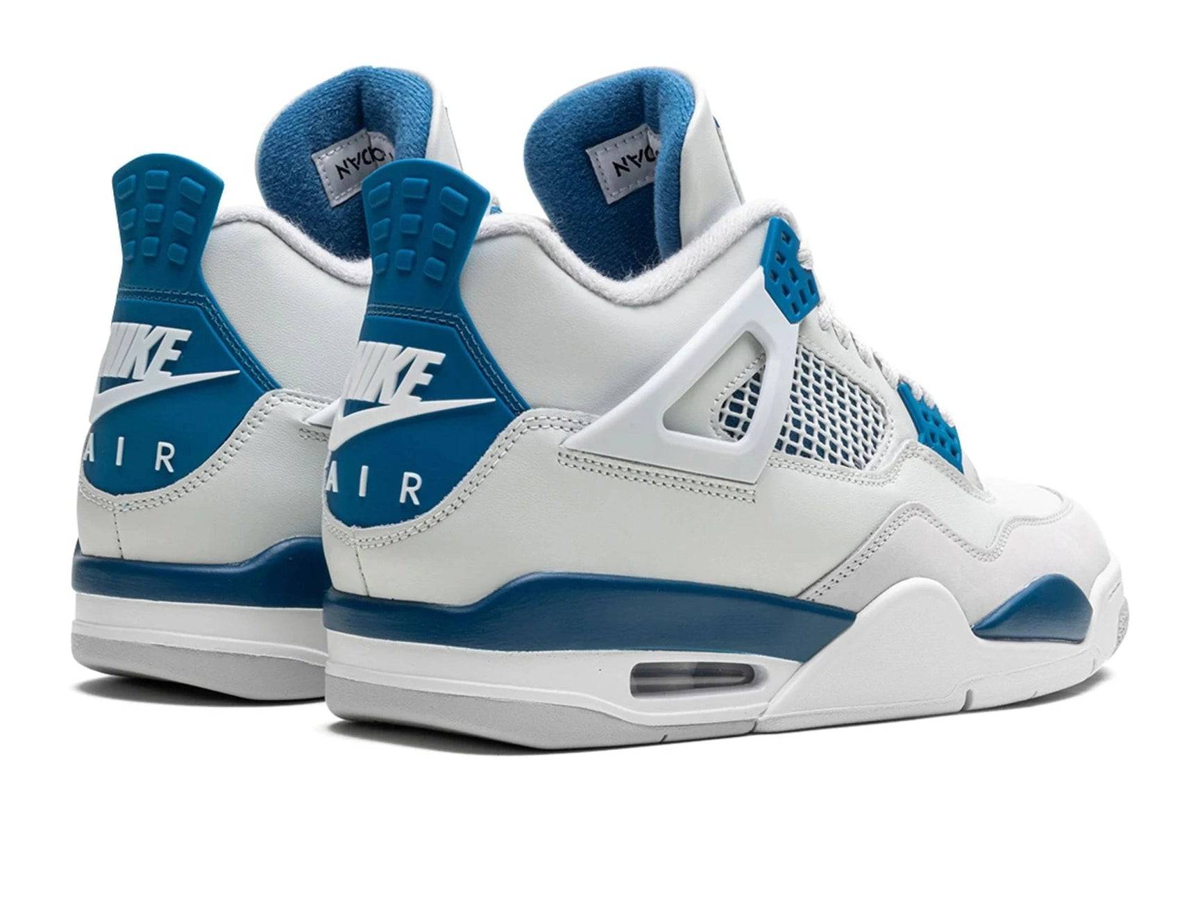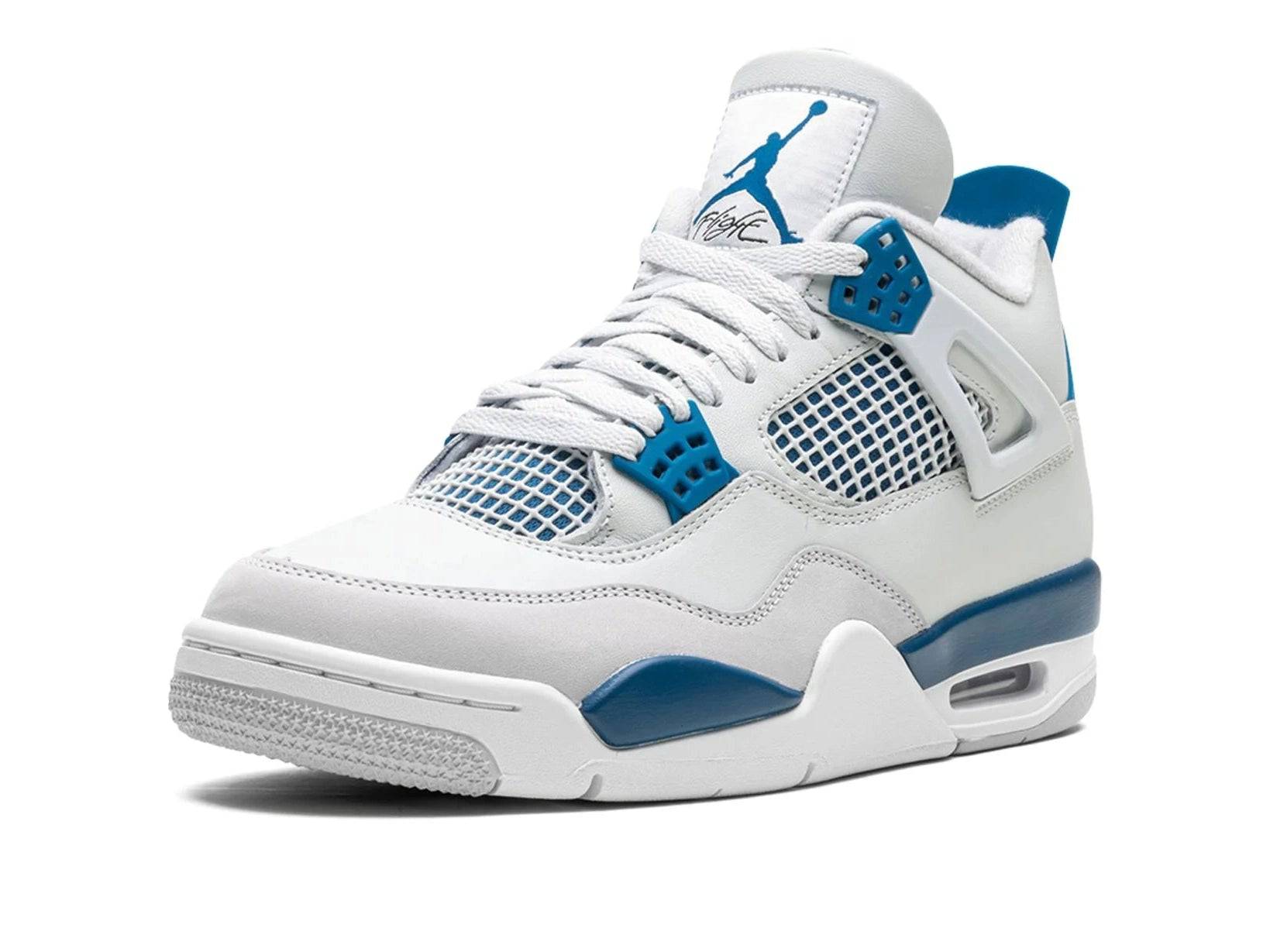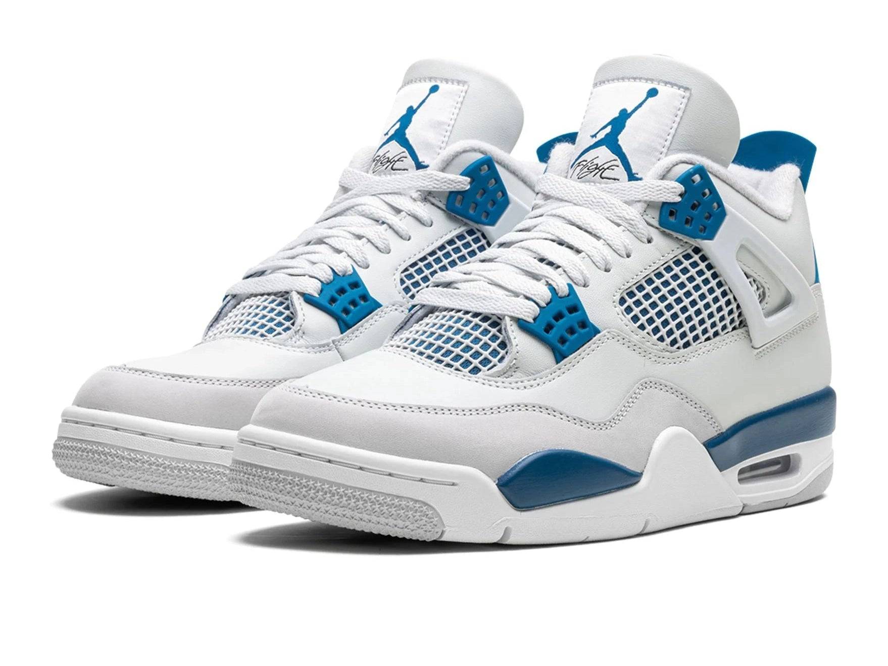 La Air Jordan 4 OG "Military Blue" est une couleur originale de la quatrième chaussure signature de Michael Jordan qui a été rééditée par Jordan Brand en mai 2024. La Jordan 4 "Military Blue" est l'une des couleurs originales de cette sneaker de basketball rétro, et l'une des plus rares aussi. Ce style n'a été lancé que deux fois auparavant, en 1989 et 2006, jusqu'à ce qu'il soit de nouveau proposé en 2024. La version moderne de la "Military Blue" reste fidèle à l'apparence originale, car elle présente la même forme, le même bloc de couleurs et le même marquage "Nike Air" que la version de '89. La chaussure a une tige en cuir blanc avec un revêtement Neutral Grey sur le bout. Un accent supplémentaire en Neutral Grey apparaît sur les "ailes" du support de lacets. Un filet blanc est superposé sur un mesh Military Blue sur le panneau central et la languette. D'autres accents Military Blue se retrouvent sur le garde-boue et les œillets de lacets, ainsi que sur le contrefort de talon avec des détails "Nike Air". Un Jumpman bleu se trouve sur la languette. En dessous, une semelle intermédiaire en caoutchouc blanc et une semelle extérieure en caoutchouc gris complètent le look.