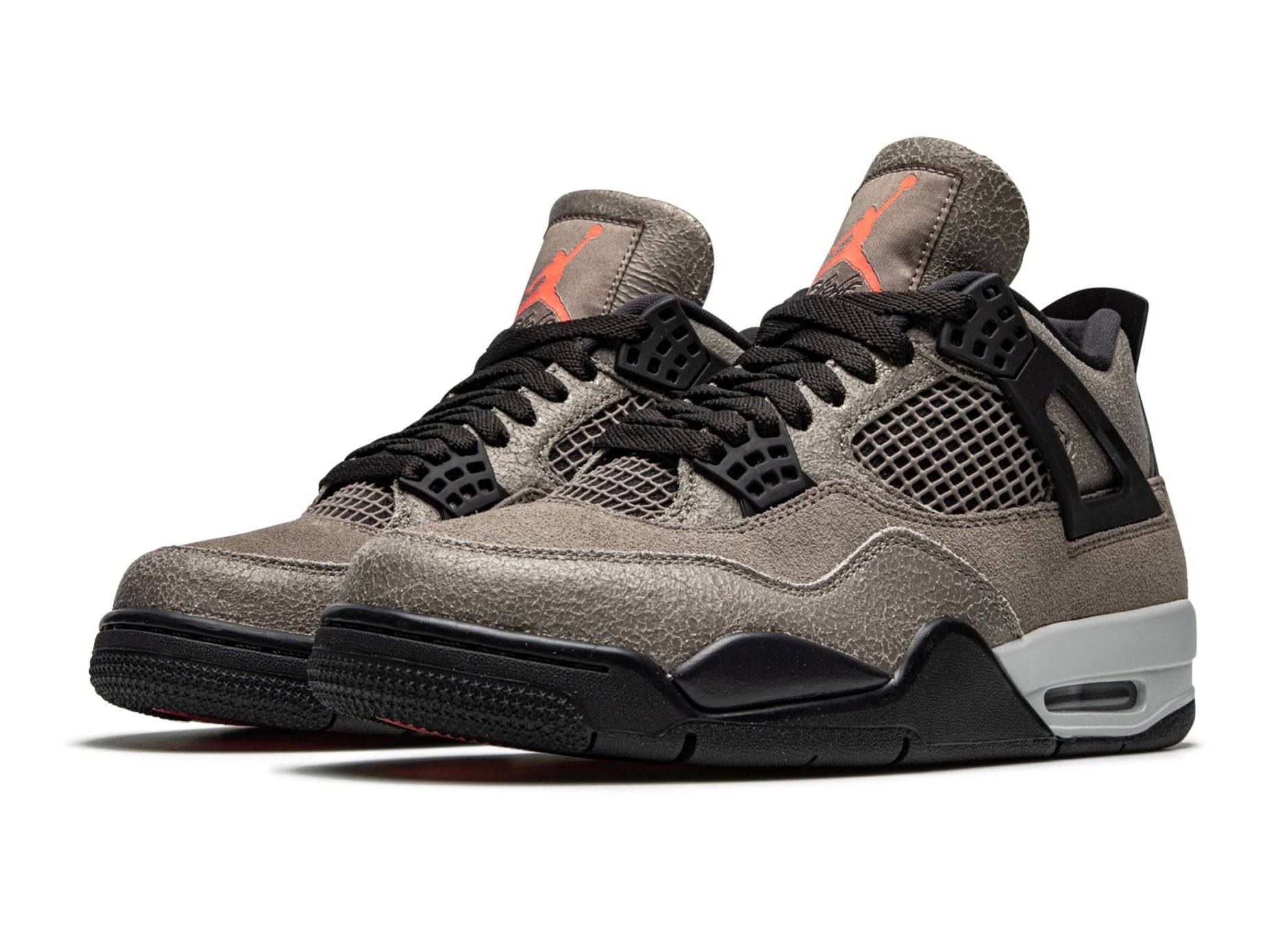 La Air Jordan 4 “Taupe Haze” est une couleur de style de la quatrième chaussure signature de Michael Jordan, qui a été lancée par Jordan Brand en janvier 2021. Le “Taupe Haze” se distingue par sa palette de couleurs neutres et terreuses. Les supports d'œillets en plastique noir “Wings” s'harmonisent avec les lacets ton sur ton et les détails en mesh sur la languette et le panneau central. Jordan Brand place un logo Jumpman taupe à l'arrière de la chaussure et un Jumpman rouge éclatant sur l'étiquette de marque cousue sur la languette. La même teinte vive de rouge apparaît sur le dessous de la languette et sur la semelle intérieure marquée Jumpman. Une unité Air visible se trouve dans le talon de la Air Jordan 4 “Taupe Haze” pour compléter le look.