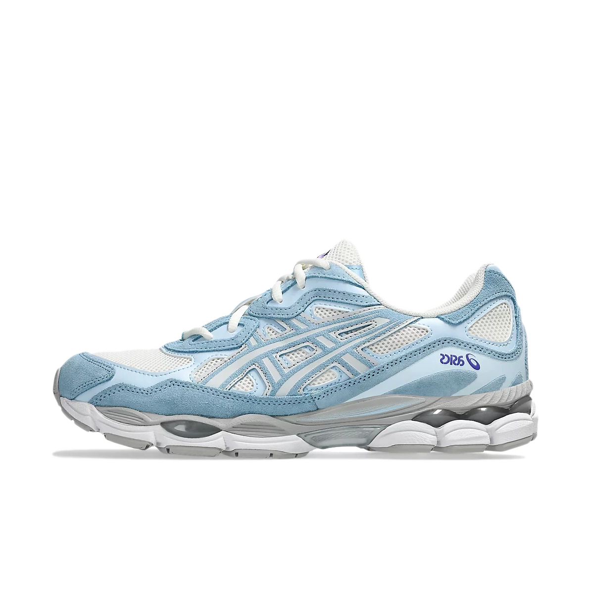 De Asics Gel-NYC Artic Sky mixt old-school running vibes met een frisse, moderne look. Het silhouet is geïnspireerd op iconische modellen zoals de Gel-Nimbus 2000 en Gel-MC Plus, en brengt retro performance naar nieuwe streetwearhoogtes. De combinatie van mesh en suède overlays in tinten van lichtblauw en wit zorgt voor een cleane colorway die moeiteloos te stylen is met je favoriete fits.