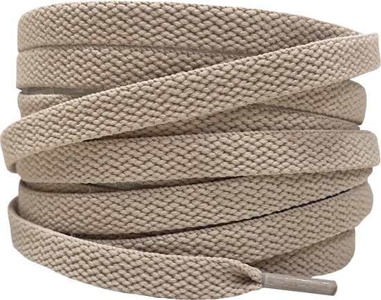 Ajoutez une touche neutre et polyvalente à vos baskets avec ces lacets plats beiges. La pointe ronde assure un ajustement sûr, et ils complètent une variété de couleurs de chaussures. Longueur recommandée : 6-7 trous : 120 cm, 7-8 trous : 140 cm, 8-9 trous : 160 cm, 9-10 trous : 180 cm.