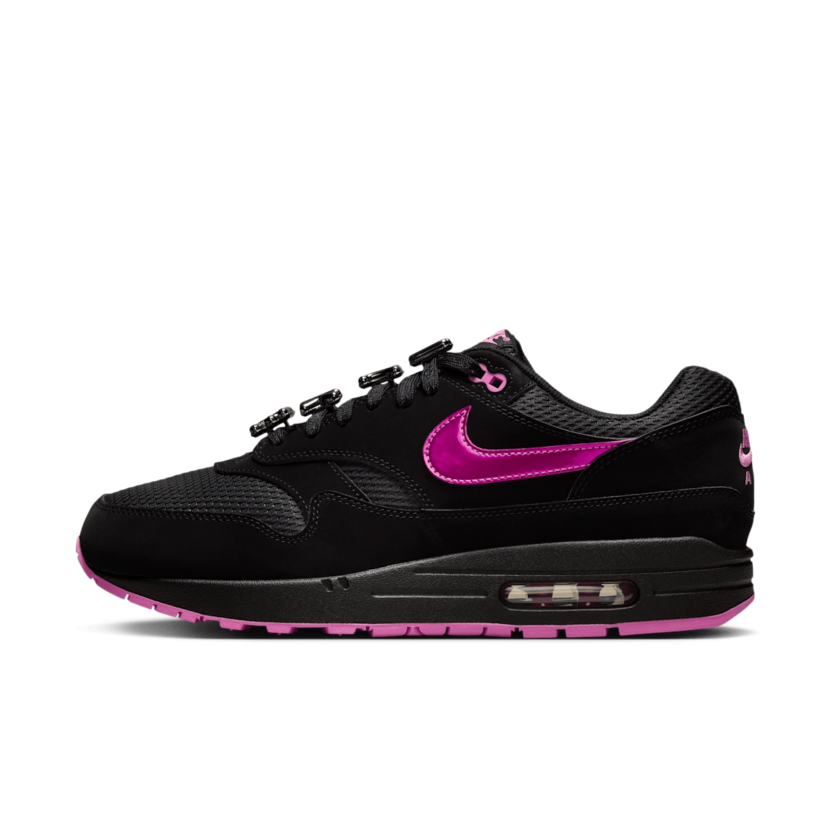 De Nike Air Max 1 PRM Valentine’s Day Black is een subtiele knipoog naar liefde, maar verpakt in een bold en edgy silhouet. Deze versie van de iconische Air Max 1 mixt diepzwart met opvallende roze accenten die je direct laten opvallen—perfect dus voor wie z’n outfit net dat beetje extra wil geven.