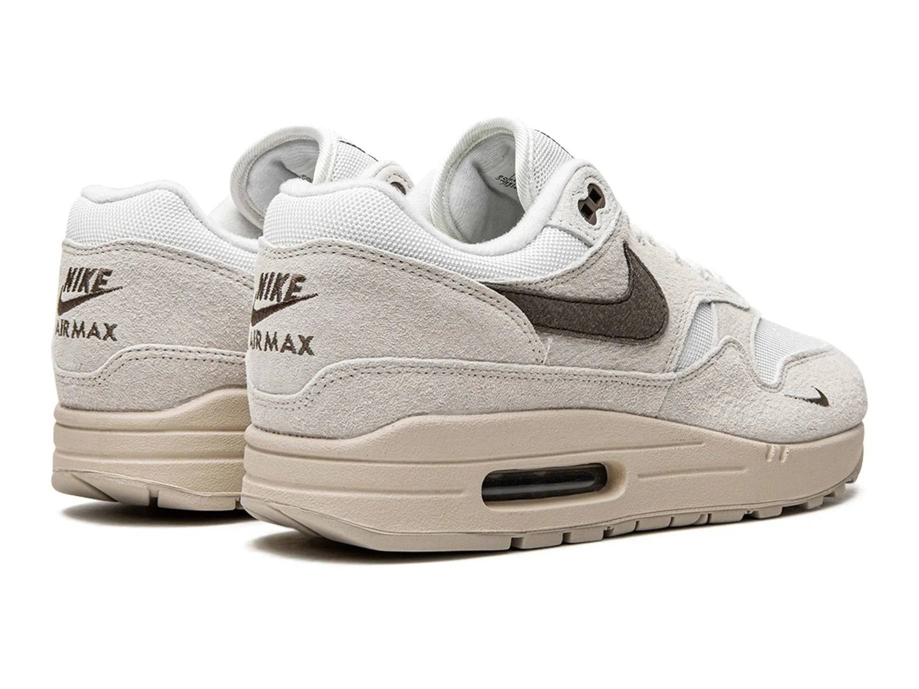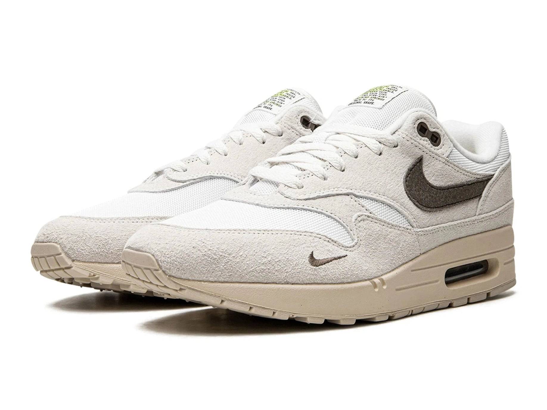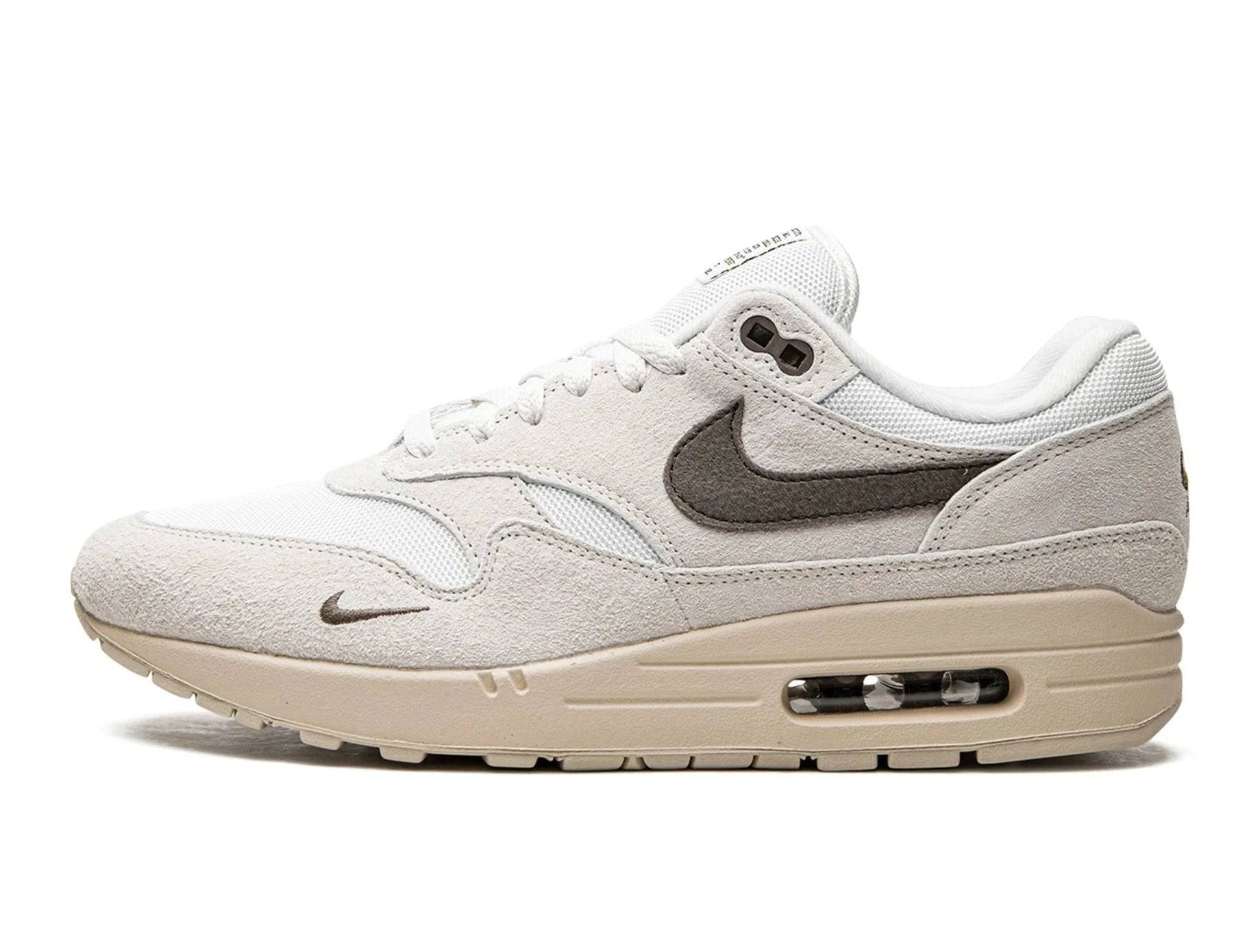 La Nike Air Max 1 « Sail/Ironstone » est un coloris extrêmement polyvalent de la chaussure de course de performance vintage. Cette Air Max 1 est conçue dans une palette de couleurs intemporelles qui se prête à une variété de tenues. La chaussure présente une base en maille blanche avec des superpositions contrastées en daim beige partout. Un Swoosh marron apparaît sur le panneau central et un Swoosh marron plus petit se trouve sur le côté latéral de l'avant-pied. La marque classique « Nike Air » est brodée sur le talon. Sous le pied, la semelle intermédiaire vieillie de la chaussure donne au design une apparence rétro.