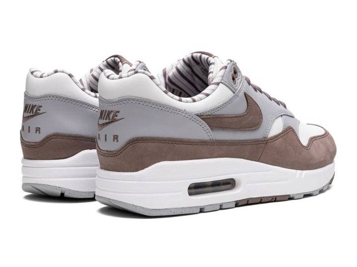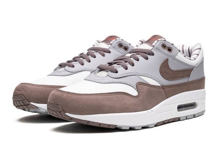 La Nike Air Max 1 « Shima Shima » est un coloris facile à porter de la chaussure de course rétro performante qui présente des couleurs neutres sur son design. La Air Max 1 « Shima Shima » a été initialement lancée par Nike en 2003 avant d'être rééditée en 2023. Le coloris présente une base textile blanche avec des empiècements contrastés en cuir synthétique gris. Un Swoosh marron correspond au garde-boue marron. Des caractères japonais rouges uniques sont imprimés sur l'étiquette de langue marron. Les détails classiques « Nike Air » et Swoosh sont brodés sur le talon. Le col intérieur est fini avec des rayures blanches et marron.