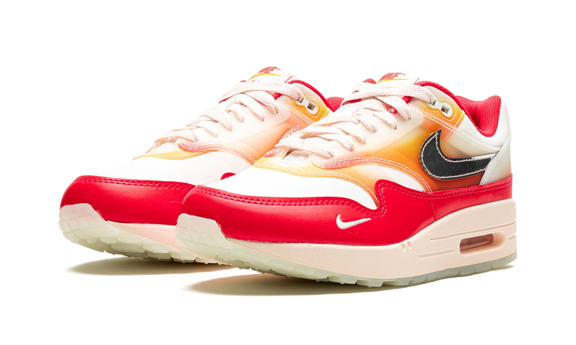 De Nike Air Max 1 Sofvi is een visuele throwback die het klassieke silhouet van de Air Max 1 mixt met de opvallende esthetiek van Japanse soft vinyl toys. De sneaker valt direct op dankzij de felle overgangen van rood, oranje en wit, afgewerkt met een glanzende metallic Swoosh die doet denken aan een gepolijste vinylfigurine. Dit ontwerp is allesbehalve standaard.