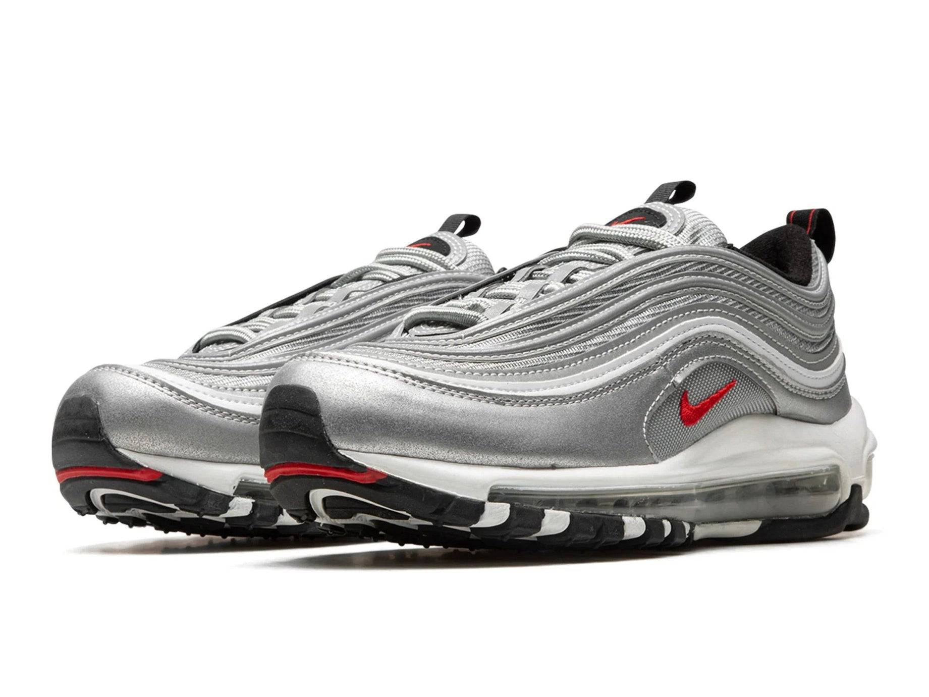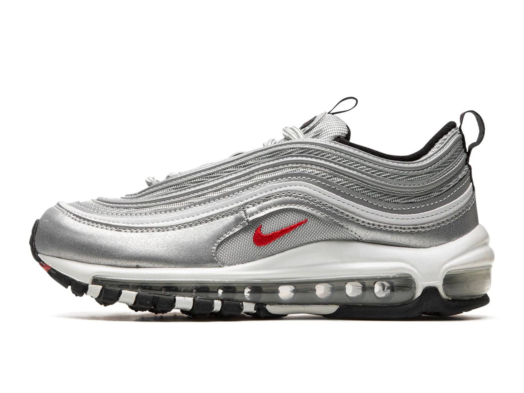 La Nike Air Max 97 « Silver Bullet 2022 » pour femme est la taille femme de la réédition 2022 du coloris original de l'emblématique chaussure de course rétro. Créée par le designer de chaussures Nike Christian Tresser en 1997, la Air Max 97 est considérée comme l’un des tout meilleurs modèles Air Max de l’histoire de la collection. Son coloris « Silver Bullet » est vénéré par la communauté des sneakers. Sur la version moderne, qui a été rééditée en 2022 pour célébrer le 25e anniversaire de l’Air Max 97, la base de la chaussure est présentée en argent métallisé, tout comme les empiècements en cuir ondulé ton sur ton qui s’enroulent autour de la chaussure. Un petit Swoosh rouge universitaire apparaît de chaque côté au-dessus de la semelle intercalaire en mousse blanche. Le logo se retrouve également sur la superposition circulaire noire sur la languette. Les détails rouges « Air Max » sont imprimés sur la languette du talon. Une unité d'amorti Max Air sur toute la longueur dans la semelle intermédiaire complète le design.