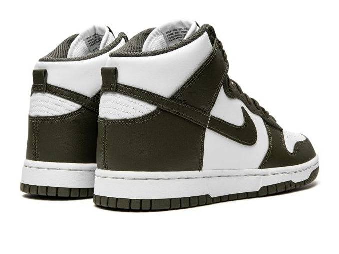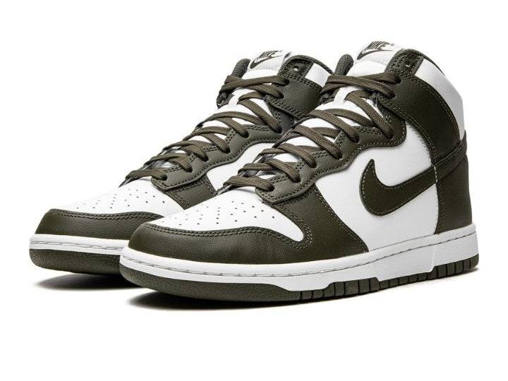 Initialement sortie en 2017, la Nike Dunk High « Cargo Khaki » a fait son grand retour lors de la saison été 2022. Arrivant dans les couleurs bicolores blanc et Cargo Khaki, cette Nike Dunk High est construite dans une construction entièrement en cuir avec une base en cuir blanc avec des empiècements Cargo Khaki ou vert foncé. La teinte verte se poursuit sur les lacets, l'étiquette de la languette, le Swoosh, la doublure et la semelle extérieure en caoutchouc.