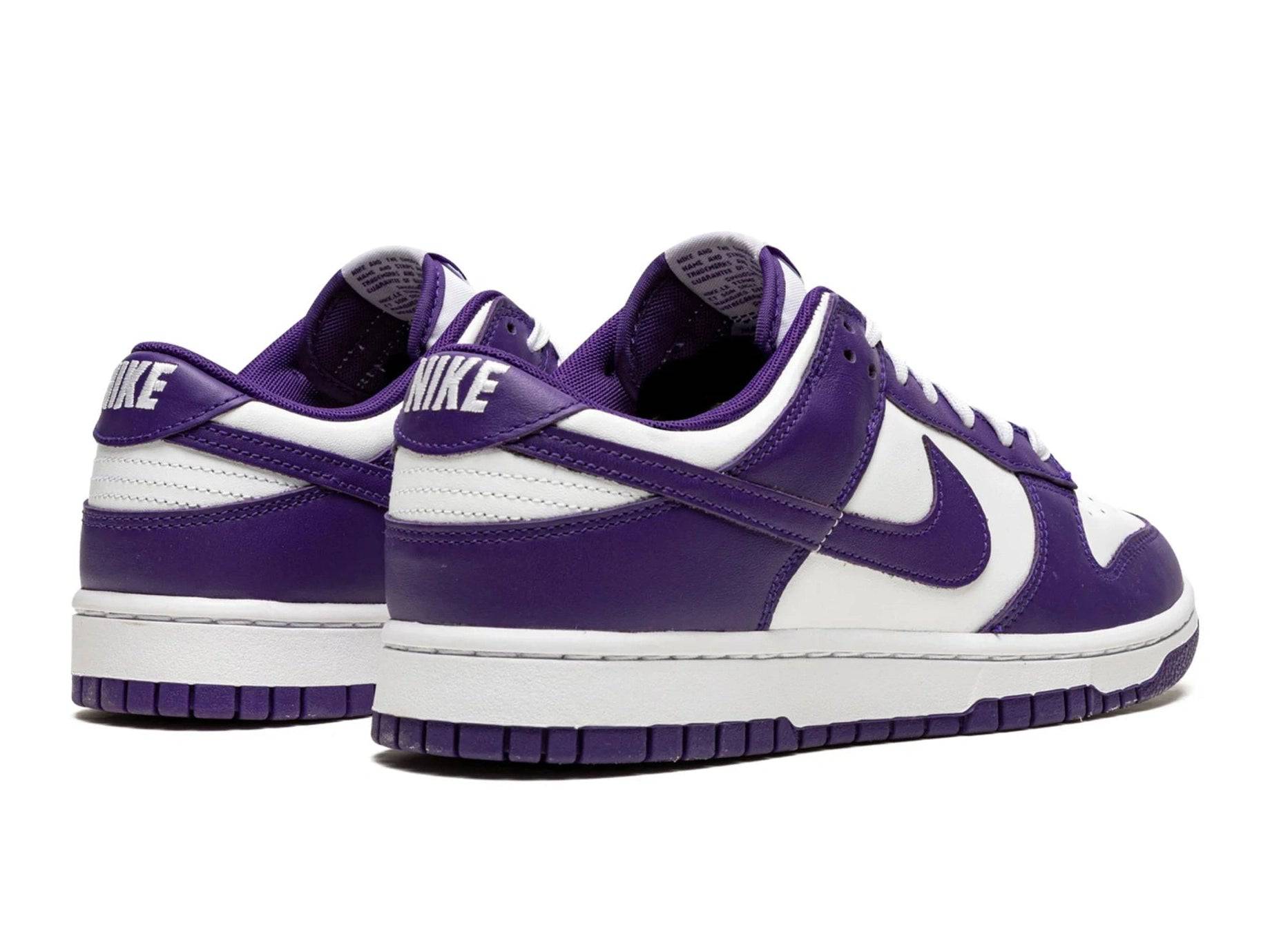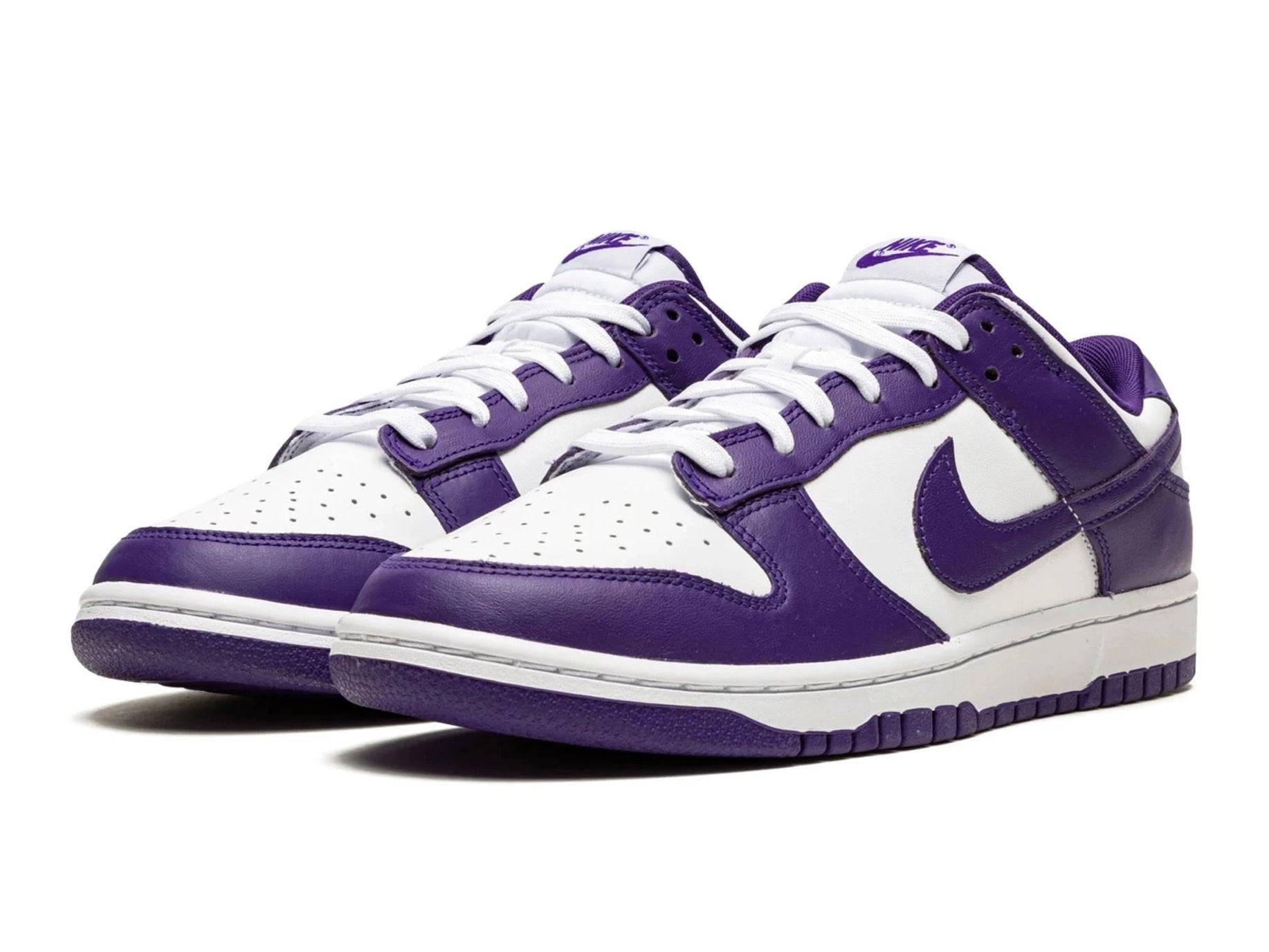 La Nike Dunk Low « Court Purple » est un coloris bicolore, blanc et violet, de la chaussure de basket-ball rétro sortie en 2022. La Dunk Low « Court Purple » présente une base en cuir blanc avec des superpositions contrastées Court Purple et la marque Swoosh. La marque « Nike » blanche est brodée sur le talon et les détails Court Purple « Nike » et Swoosh sont imprimés sur l’étiquette de languette en nylon blanc sur la languette en nylon blanc. Une semelle intercalaire blanche bicolore et une semelle extérieure en caoutchouc Court Purple complètent le look.
