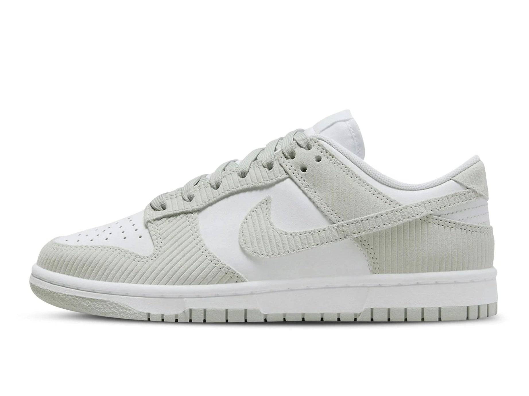 La Nike Dunk Low « Grey Corduroy » pour femme est un coloris exclusif pour femmes de la chaussure de basket-ball rétro avec une combinaison unique de matériaux. La construction présente une base en cuir blanc qui contraste avec des panneaux superposés en velours côtelé Light Silver sur toute la chaussure. Le Swoosh qui apparaît de chaque côté est également rendu en velours côtelé gris. La marque classique « Nike » est brodée sur le talon et imprimée sur l’étiquette de la languette. Une semelle intercalaire en caoutchouc blanc et une semelle extérieure Light Silver complètent le look.