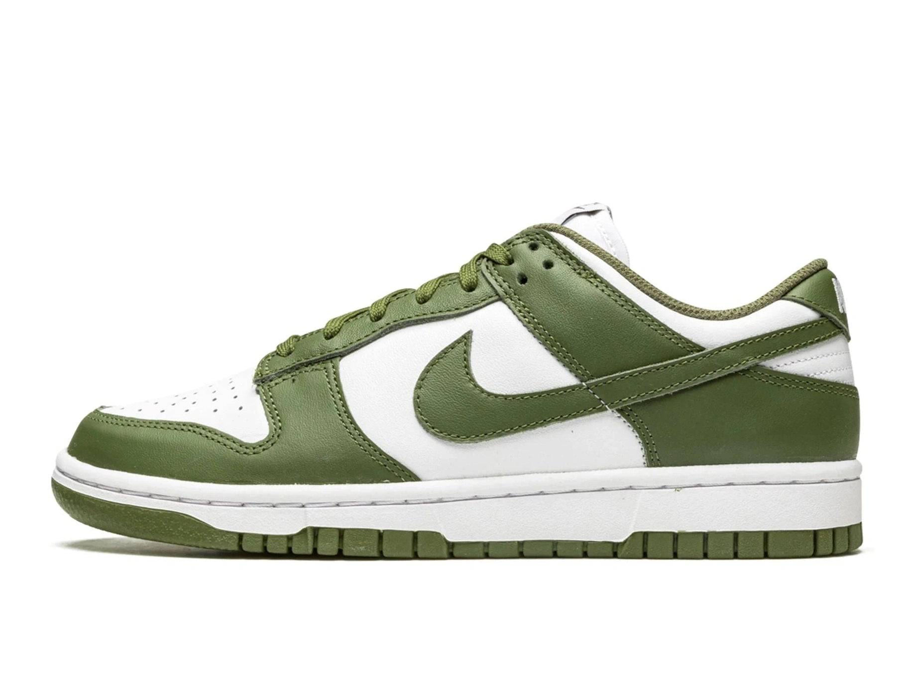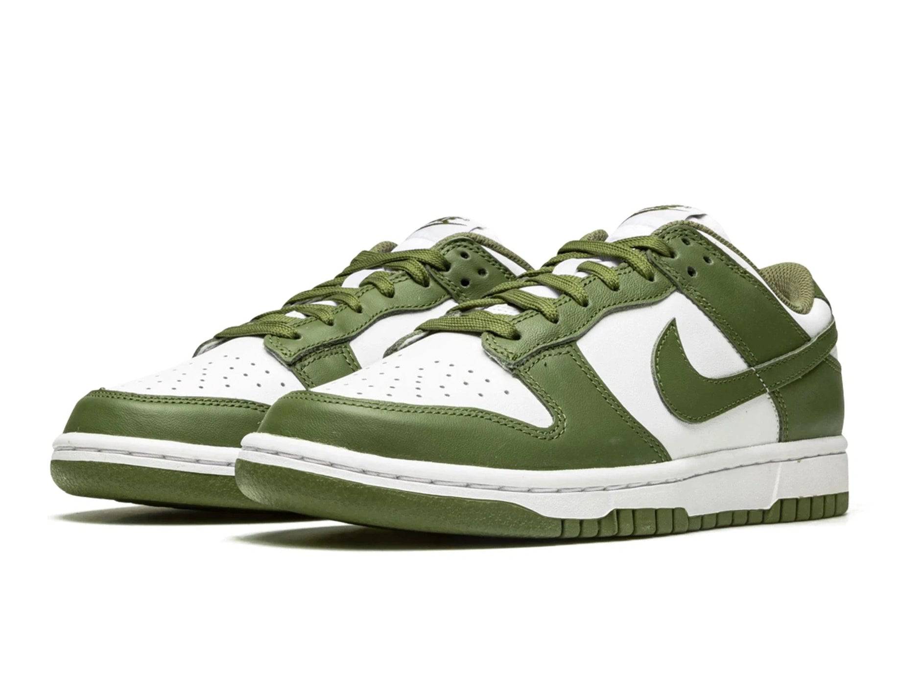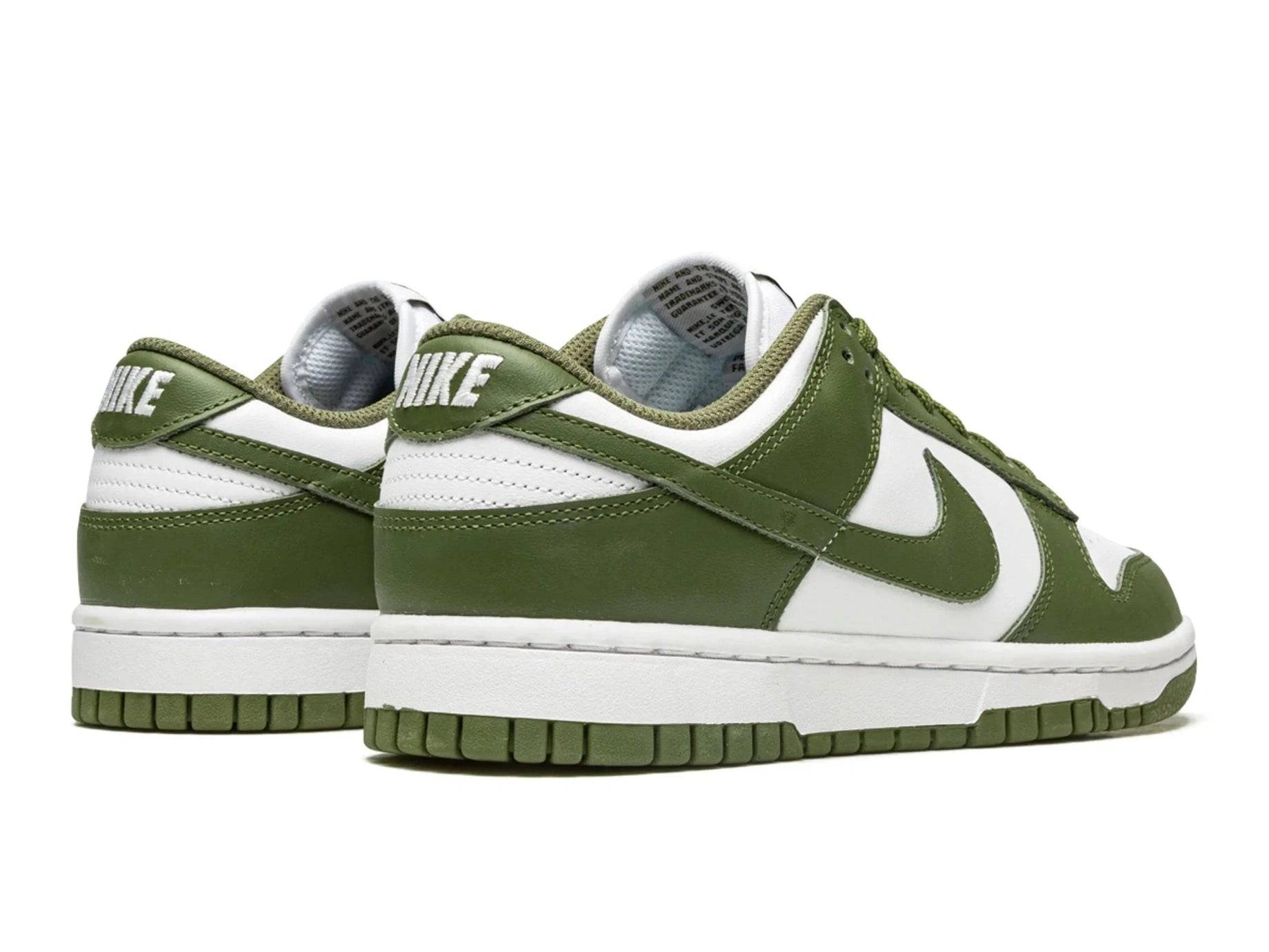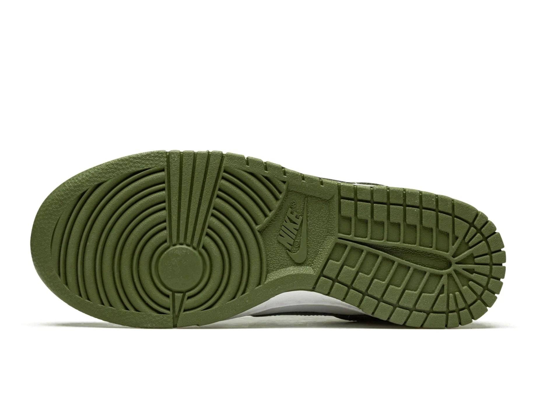 La Nike Dunk Low « Medium Olive » pour femme est une version exclusive aux femmes qui excelle en termes de polyvalence grâce à son utilisation de couleurs neutres et terreuses. La tige est en cuir blanc sur la pointe perforée, le panneau central et le col. Un cuir contrastant de couleur olive moyen apparaît sur les superpositions et sur le logo Swoosh de chaque côté. Un détail « Nike » blanc est brodé sur le talon. Des marques « Nike » et Swoosh supplémentaires peuvent être trouvées sur l'étiquette de la languette vert olive.