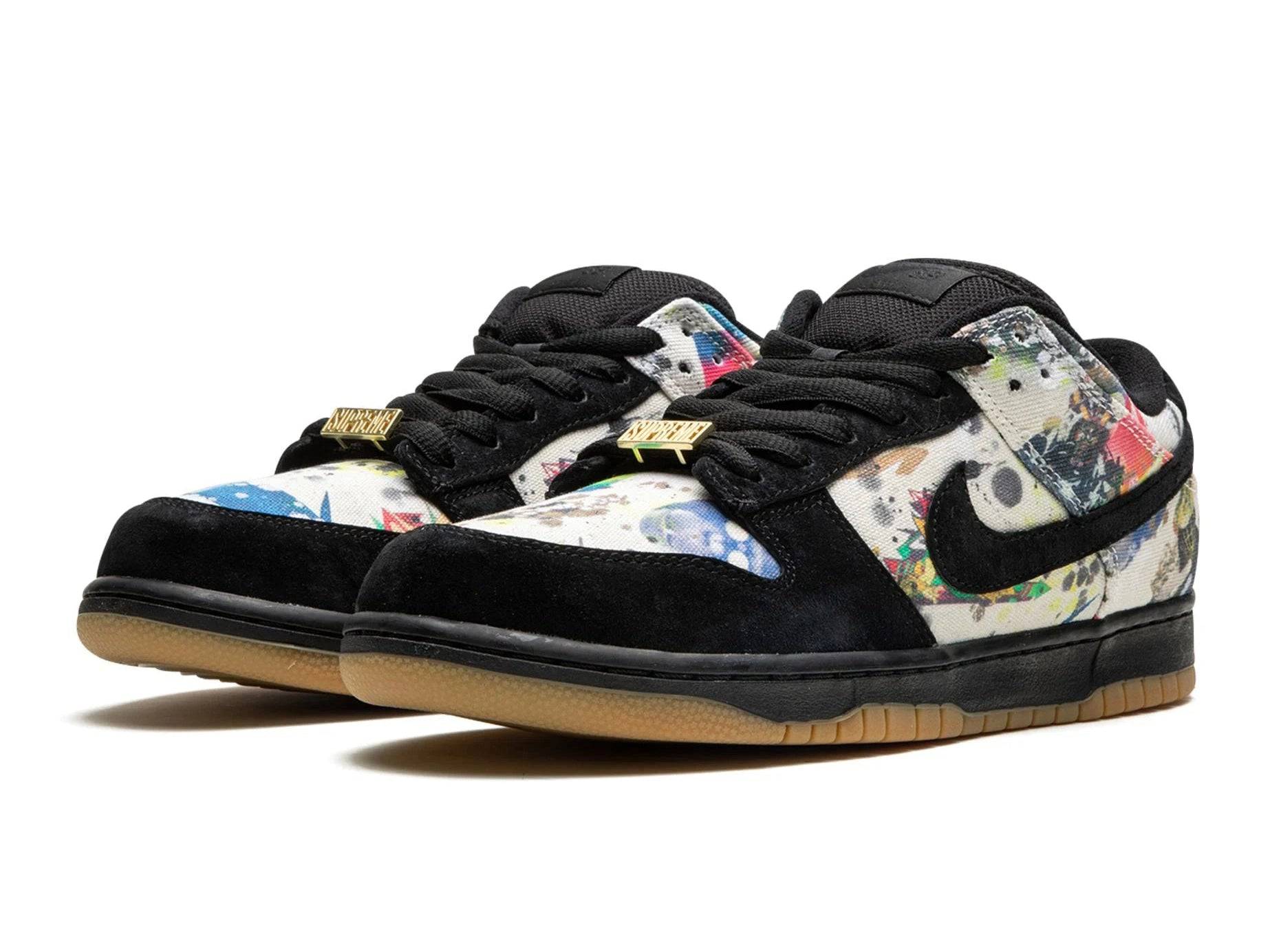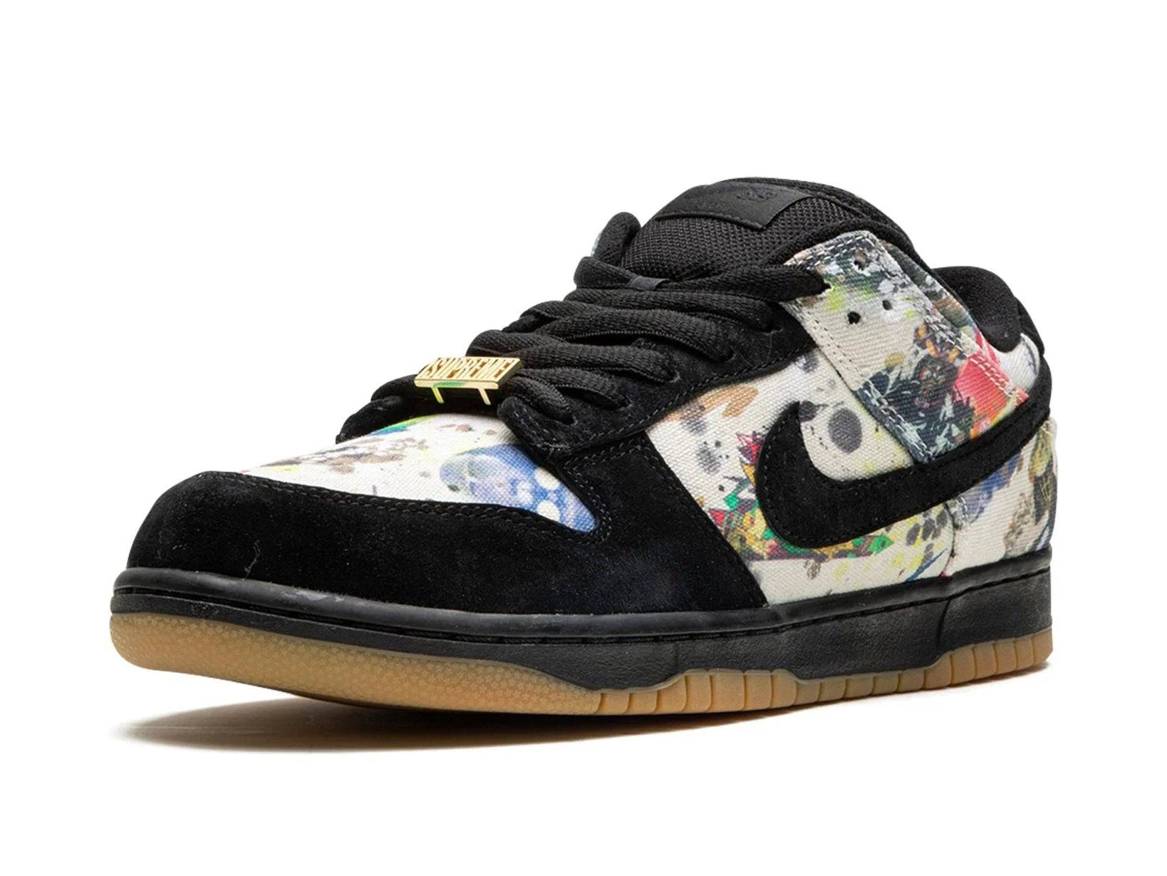 La Nike SB Dunk Low Supreme Rammellzee présente un design unique inspiré de l'artiste de rue emblématique Rammellzee. Avec une construction durable et un ajustement confortable, ces chaussures sont parfaites pour les skateurs et les amateurs de baskets. Montrez votre style et soutenez les arts avec ces chaussures exclusives.