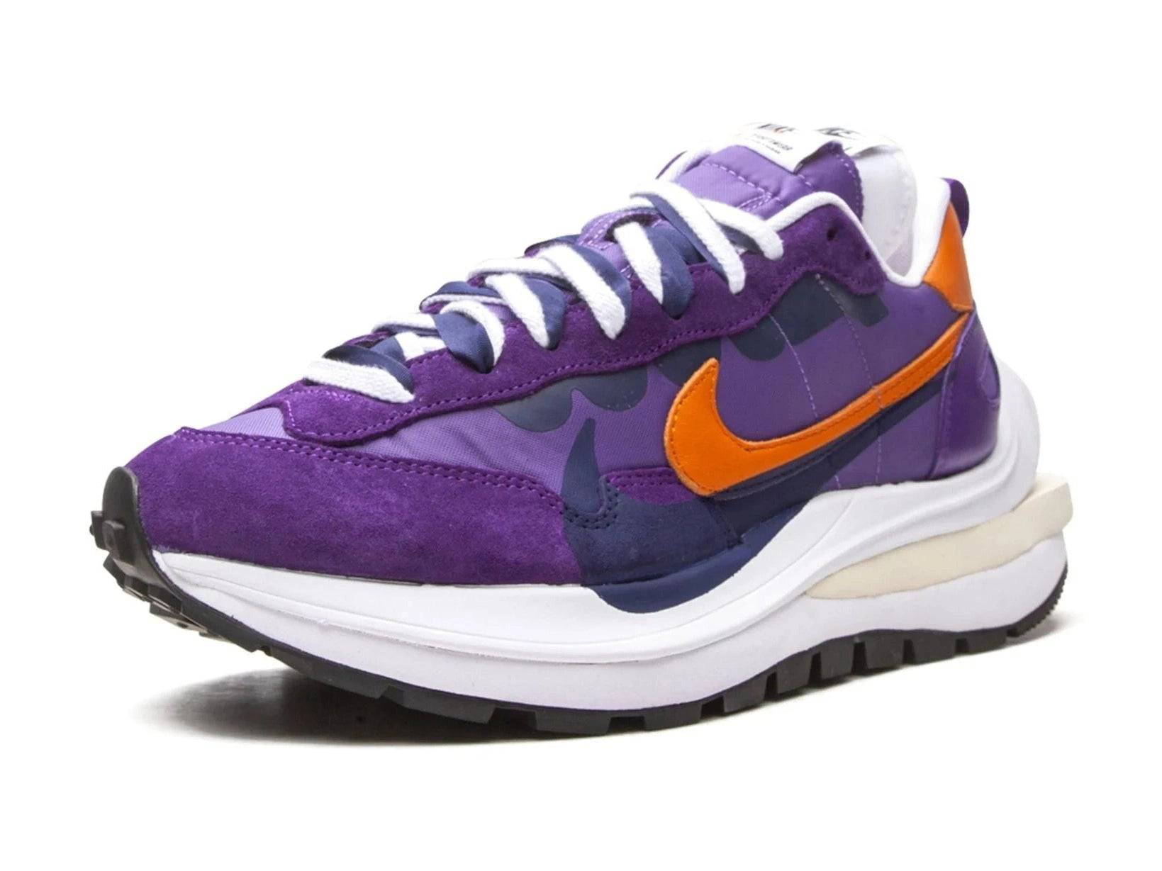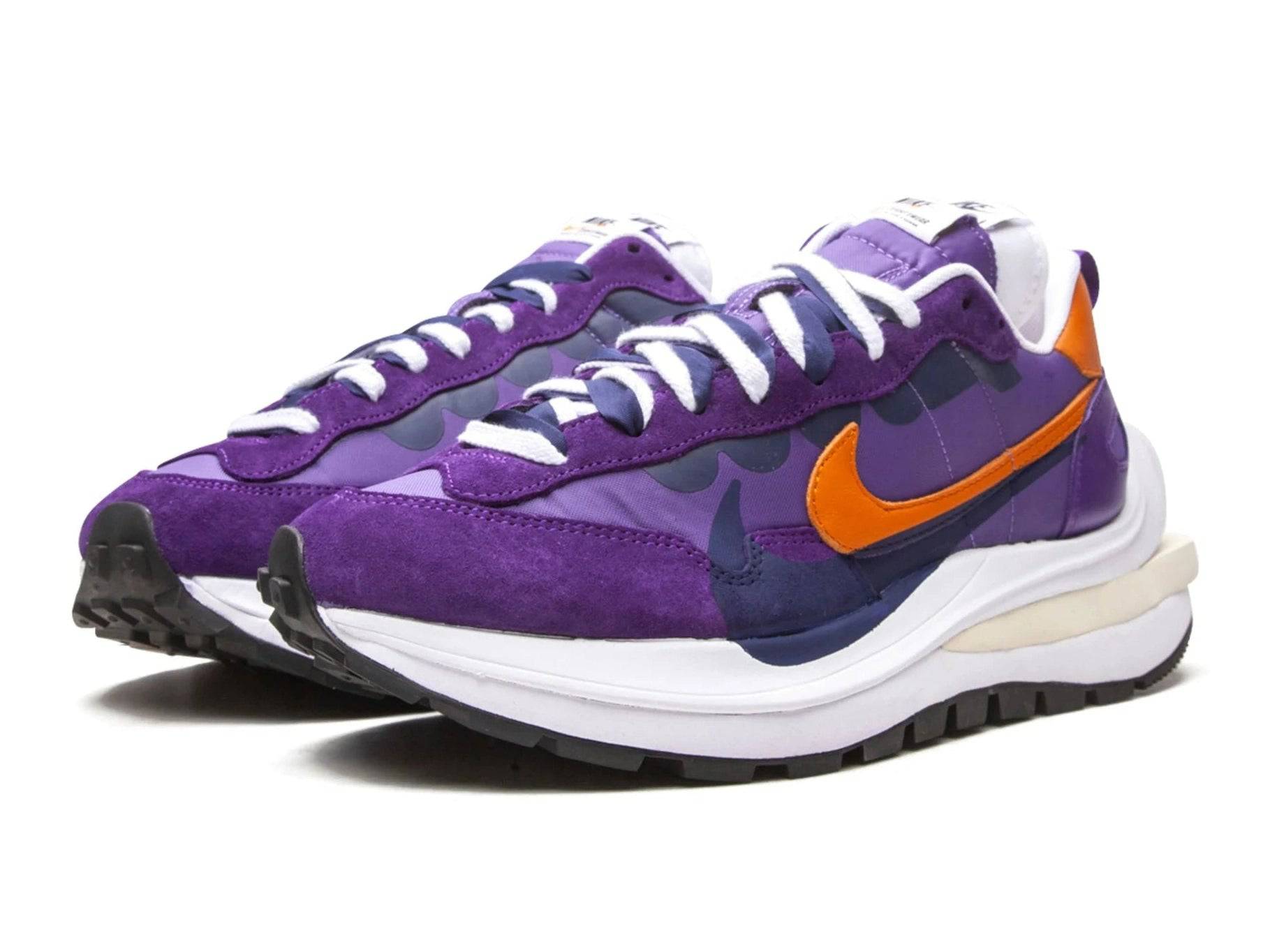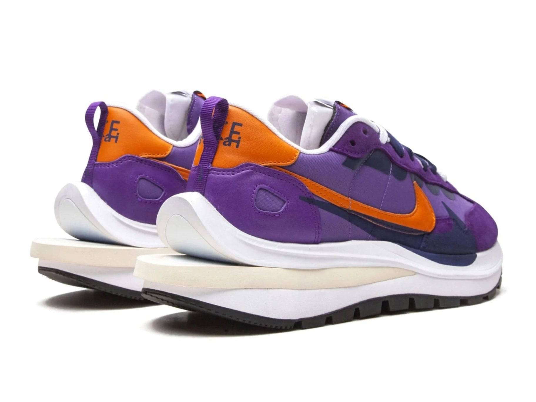 La Nike VaporWaffle sacai Dark Iris est une entreprise de Dark Iris en suède, en cuir et en textile, avec des accents orange sur le Swoosh et le logo. De même, Swooshes et witte middenzolen zijn double uitgevoerd, prochelijkbaar avec les mêmes travaux de sacai avec les versions Waffle. La marque Nike et Sacai est vendue sur plusieurs étiquettes à languettes et tablettes de sécurité. Un gaufre-buitenzoel noir est rond sur le côté opposé.